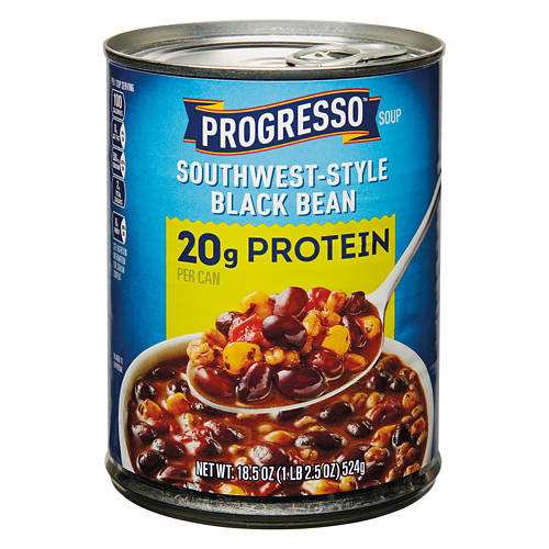 Progresso Southwest Style Black Bean Soup packs 20g of protein per can to power your day. With a hearty mix of black beans, corn and spices, this soup is perfect for a quick lunch or dinner. Enjoy it on its own or pair it with a side of crusty bread for a satisfying meal. Progresso Southwest Style Black Bean Soup is a delicious and easy meal.