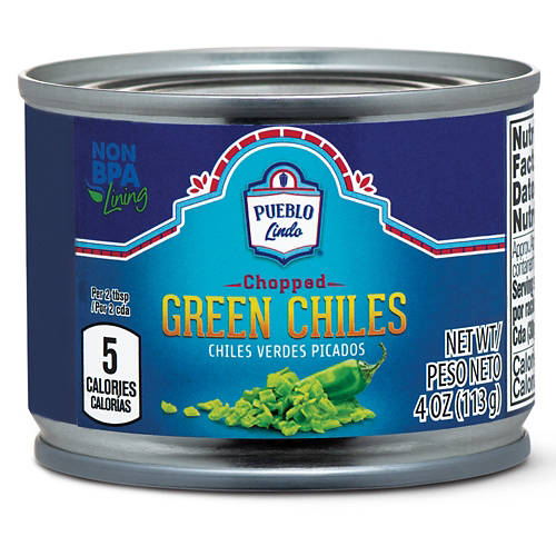 Pueblo Lindo Chopped Green Chiles bring a zesty kick to your meals. Each 4 oz can packs a bold flavor with only 5 calories per serving. Perfect for adding to tacos, enchiladas or your favorite dip. Enhance your dishes with this vibrant ingredient that’s sure to please. Simple, tasty and ready to use, Pueblo Lindo Chopped Green Chiles are a pantry must-have.