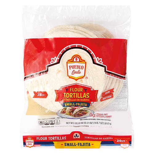 Pueblo Lindo Fajita Flour Tortillas are now softer and ready to elevate your meals. With 0g trans fat and no cholesterol, these tortillas are perfect for your favorite fajitas or wraps. Each pack contains 20 tortillas, giving you plenty to work with for family dinners or meal prep. Enjoy the authentic taste and texture that will make your dishes stand out. Make every meal special with Pueblo Lindo Fajita Flour Tortillas.