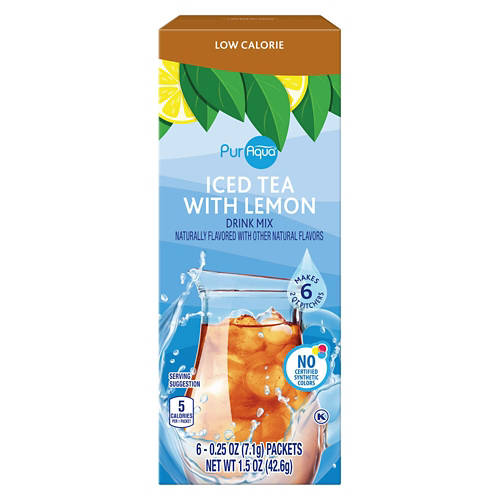 PurAqua Iced Tea with Lemon is your go-to drink mix for a refreshing beverage. This low-calorie option has only 5 calories per serving. Each packet is designed to make a full pitcher, perfect for gatherings or enjoying throughout the day. Experience the crisp taste of lemon in every sip.