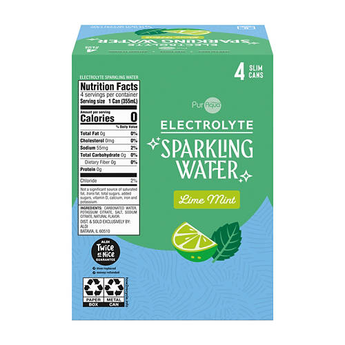 Lime Mint Flavored Electrolyte Sparkling Water - 4 pack, 12 fl oz can