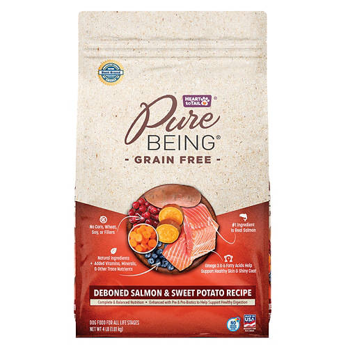 Help your pup stay happy with this Pure Being Salmon and Sweet Potato Premium Grain Free Dog Food! The dry dog food is free of corn, wheat, soy, and added fillers so your doggo only gets the vitamins, minerals, and nutrients they need. Serve it to your dog every day to keep them strong and healthy!