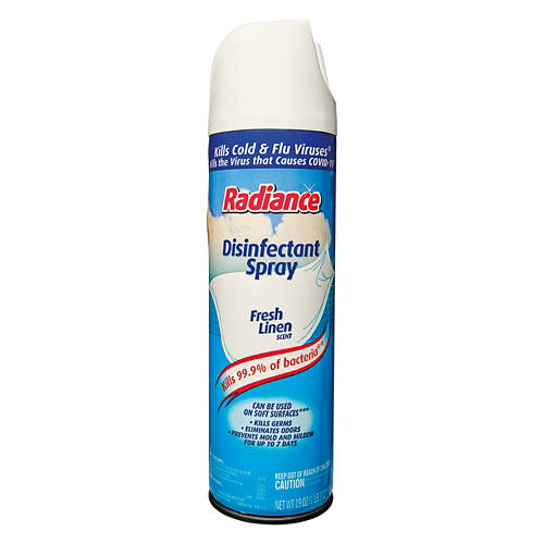 Radiance Disinfectant Spray kills 99.9% of bacteria and eliminates odors with a fresh linen scent. Use it on soft surfaces to kill germs and prevent mold and mildew for up to seven days. This powerful spray also tackles cold and flu viruses including the virus that causes COVID-19. Perfect for keeping your home clean and fresh.