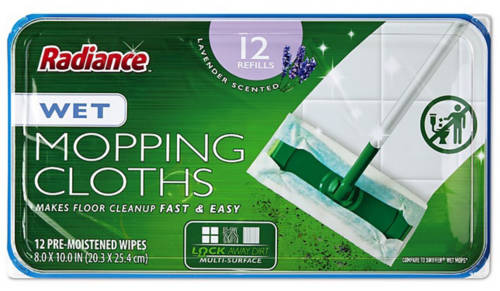 Make your cleanup faster and easier with Radiance Lavender Wet Floor Wipes. This reclosable pack of pre-moistened wet cloth wipes locks away dirt and dust on multiple surfaces including wood and tile. All you have to do is take a wipe, attach it to your mop, and start cleaning! Once the wipe is dirty, just throw it out and grab a fresh one. Make your home smell like fresh lavender with these mopping cloths.