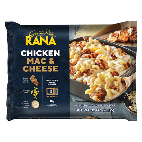 This Rana Chicken Macaroni & Cheese Meal Kit offers a delicious combination of grilled white chicken, cavatappi pasta and white cheddar cheese sauce. With all ingredients and a bowl included, this meal is ready in 11 minutes in the microwave. Enjoy 18g of protein per serving in this flavorful dish that has no preservatives. Ideal for a quick lunch or dinner, Rana Chicken Macaroni & Cheese Meal Kit makes mealtime both easy and satisfying.