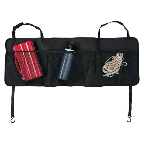 Back seat organizer • Foldable for space-saving storage • Removable compartment with Velcro dividers • 3 mesh pockets on the sides • Size approx. 16 x 9 x 6 inches