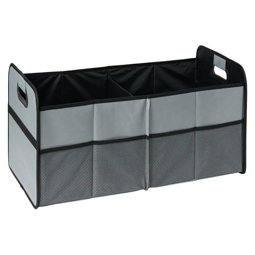 Great solution for storing groceries, sports gear, tools and cleaning supplies 2 large compartments and 4 small mesh side pockets for versatile organization Folds flat for quick and easy storage Hook-and-loop-fastener on the bottom surface fastens the organizer to a carpeted surface