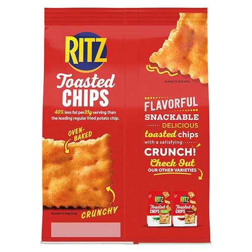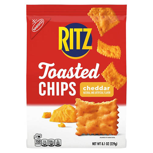 Ritz Toasted Cheddar Chips pack a punch of cheddar flavor in every bite. These crispy chips are perfect for enjoying on their own or paired with your favorite dips. They are a tasty treat for any occasion. Satisfy your craving for something crunchy and cheesy with Ritz Toasted Cheddar Chips.