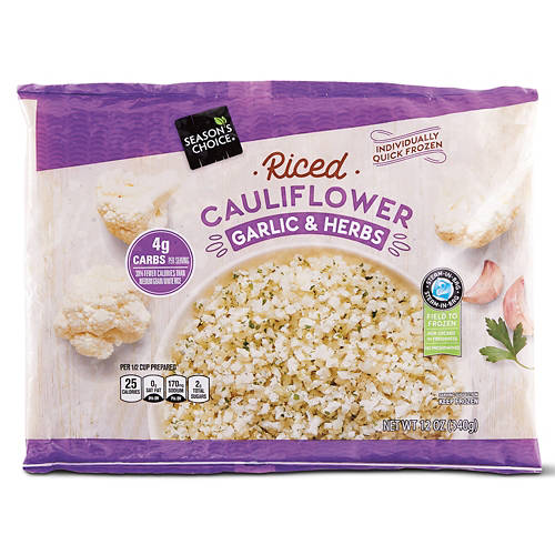 Whipping up tasty dinners for your family is easy with this Season's Choice Garlic Riced Cauliflower! The frozen cauliflower has been mixed with a fresh garlic & herb blend for a delicious bite every time. Steam yours right in the bag for a hearty and healthy side dish in minutes!