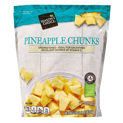 Season's Choice Frozen Pineapple brings a taste of the tropics to your kitchen. Unsweetened and rich in Vitamin C, these pineapple chunks are ideal for smoothies, desserts or as a delicious addition to any meal. Enjoy the pure, natural flavor of pineapple without any additives. Simple, nutritious and versatile—make every dish brighter with this tropical delight.