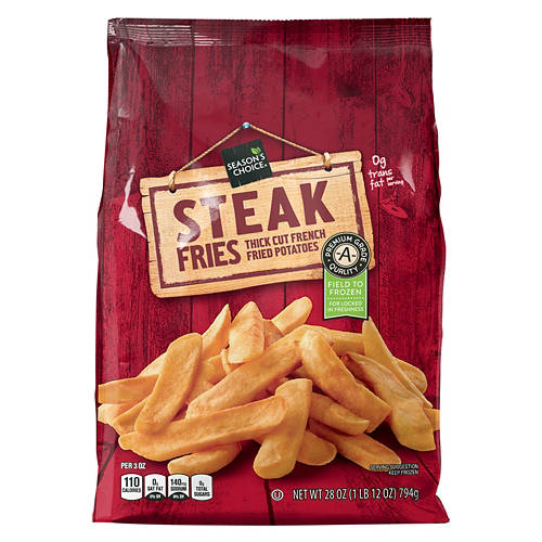 Season's Choice Steak Fries make a great side for dinner or snack for lunch. Try these thick cut French fried potatoes on those nights or afternoons when you need something quick and easy to make. Pair them with chicken nuggets for the kids or homemade burgers for the entire family to enjoy.