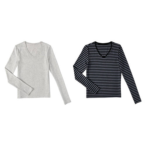 2 Pack Ladies Basic Tops - Grey & Black, XL