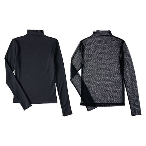 2 Pack Sheer Layering Top Gray and White: 85% Polyamide, 15% Elastane Black and Brown: 75% Polyester, 22% Cotton, 3% Elastane Sheer or Lace Oeko-Tex Certified