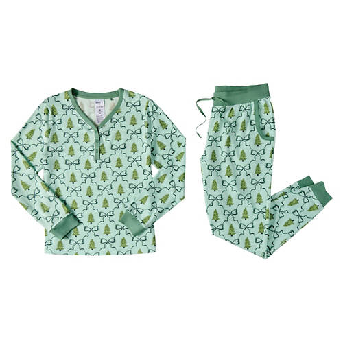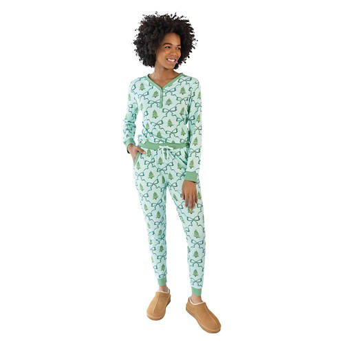 2 Piece Ladies Thermal Pajama Set - Green, M