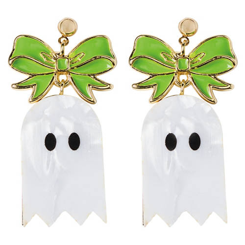 Halloween Earring - Green Ghost Bow