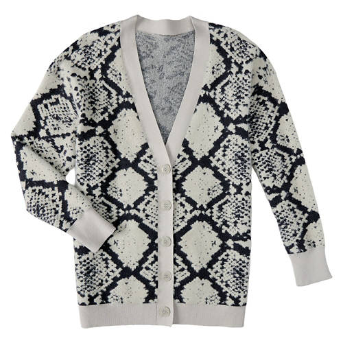 Ladies Button Front Cardigan - Snakeskin, M/L