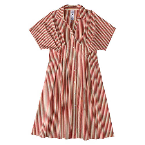 Ladies Pleated Front Woven Dress - Stripe, S