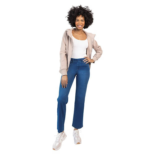 55% Cotton, 36% Polyester, and 9% Spandex Elastic waistband, faux front pockets, functional back pockets OEKO-Tex Certified