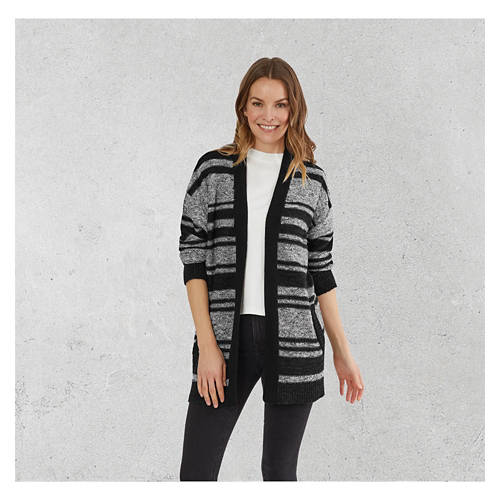 Ladies Long Layer Cardigan - Stripe, L