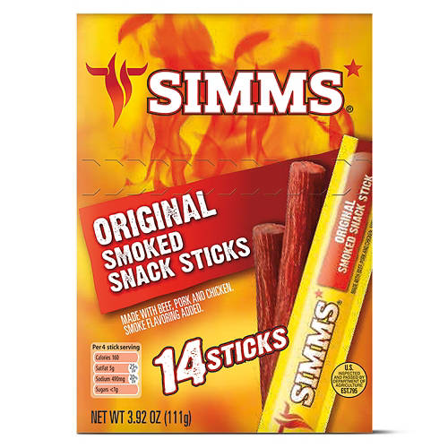 Stay satisfied on the go with these Simms Original Smoked Snack Sticks! Each protein-packed stick is made with premium beef, pork, and chicken for a hearty bite every time. Bring yours along while running errands, or slip one into your work bag for the perfect midday fuel!