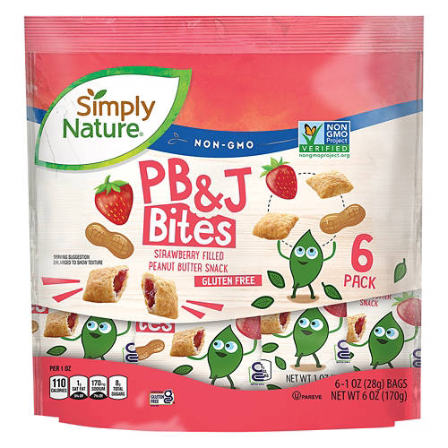 Simply Nature PB & J Bites are a delicious gluten-free, non-GMO snack. Each bite is filled with strawberry and peanut butter, offering a sweet and savory treat. A great choice for a quick pick-me-up. Perfect for lunchboxes or on-the-go snacking, these bites are sure to satisfy your cravings. Enjoy the classic taste of PB&J in a convenient bite-sized form.
