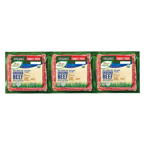 Simply Nature Organic Grass Fed 93% Ground Beef is the ideal choice for your meals. This organic beef is 100% grass-fed and contains no antibiotics or added hormones. Use it in burgers, meatballs or tacos for a flavorful and nutritious dish. Simply Nature Organic Grass Fed Ground Beef brings quality and taste to your table.