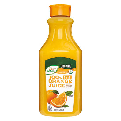 Start your day off right with a cold glass of Simply Nature Not From Concentrate Organic Orange Juice. Each sip of the non-GMO orange juice is packed with ripe citrus flavor and is pulp free. Pour it over ice to pair with your morning eggs and toast, or use it in fruity mixed drinks during a get-together with friends.