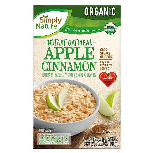 Enjoy a taste of autumn any time of year with these Simply Nature Organic Apple Cinnamon Instant Oatmeal Packets! Made with heart-healthy whole grain, each bowl of organic instant oatmeal is packed with cozy apple cinnamon flavor. Top yours with fresh apple slices and a drizzle of maple syrup for the ultimate breakfast!