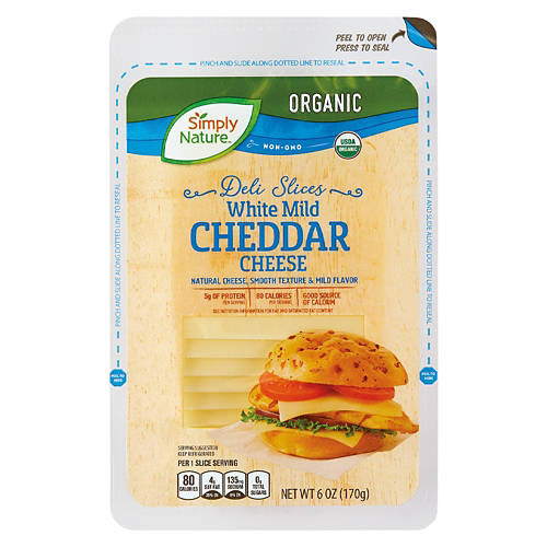 Simply Nature White Mild Cheddar Cheese Slices bring a smooth texture and mild flavor to your sandwiches and burgers. This cheese is good source of calcium. Each slice contains 80 calories, 5g of protein per serving. Enjoy the quality and taste of Simply Nature Organic White Mild Cheddar Cheese Slices in every bite.
