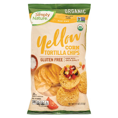 Put out these Simply Nature Organic Yellow Corn Tortilla Chips with your favorite dips for a snack all your friends will love. The gluten free tortilla chips are non-GMO verified and have a dusting of sea salt to bring out the chips' natural flavor. Share them with friends over bowls of spicy salsa, creamy queso, and fresh guacamole for the perfect party treat.