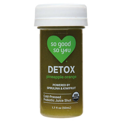 So Good So You Pineapple Orange Detox Organic Cold-Pressed Probiotic Juice Shot is a powerful blend featuring spirulina and kiwifruit. This organic cold-pressed juice shot offers a refreshing pineapple and orange flavor. Enjoy it as a quick pick-me-up or a complement to your daily wellness routine. With its unique combination of ingredients, this juice shot is a smart addition to your diet. Boost your day with So Good So You Pineapple Orange Detox Organic Cold-Pressed Probiotic Juice Shots.