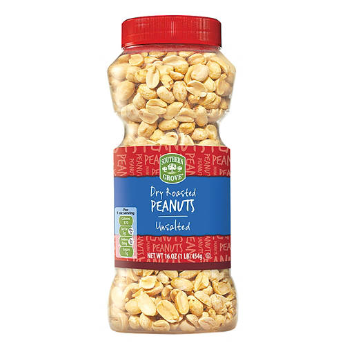 No salt needed. These Southern Grove Dry Roasted Unsalted Peanuts from ALDI make for a healthy snack right out of the jar, add a craveable crunch to baked good and make the perfect base for homemade peanut butter or trail mix. Southern Grove Dry Roasted Unsalted Peanuts are a healthy and tasty low-sodium snack you're sure to enjoy.