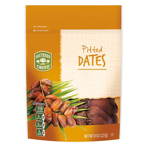 These Southern Grove Pitted Dates from ALDI make for a quick and easy snack. No pits make for easier snacking and a better texture. Dates are rich nutrients, fiber and antioxidants. Often referred to as "nature's candy", their sweet flavor makes them a great option for use in desserts. Enjoy Southern Grove Pitted Dates as a quick and wholesome snack, or chop them up to enhance salads, oatmeal and smoothies with a touch of natural sweetness!