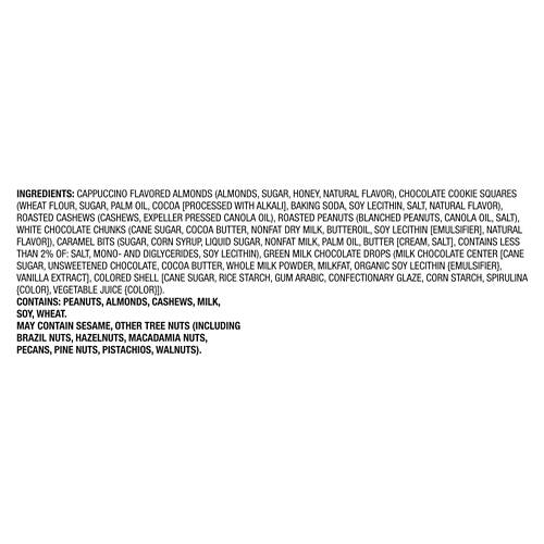 Southern Grove Shamrock Crème Crunch Trail Mix is a delightful blend of cappuccino flavored almonds, chocolate cookie squares, roasted cashews, roasted peanuts, white chocolate chunks, caramel bits and milk chocolate candies. Perfect for a festive snack, it combines sweet and savory flavors for a satisfying treat. Enjoy it at home or on-the-go for a quick, delicious bite. Make Southern Grove Shamrock Crème Crunch Trail Mix your tasty choice for any occasion.