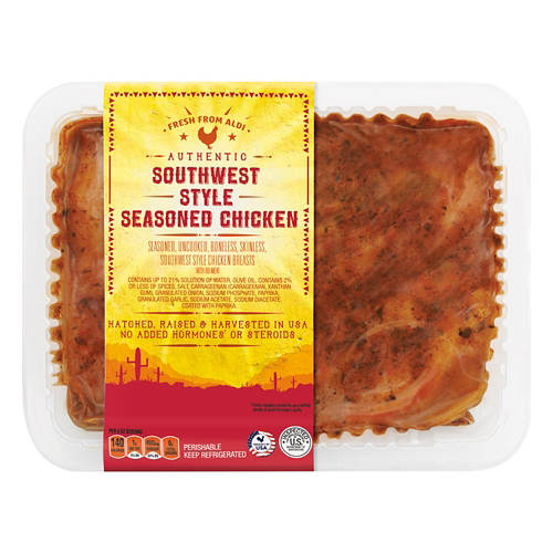 Southwest Style Seasoned Chicken Breasts are the ideal choice for a flavorful meal. They're seasoned in a Southwest style with a blend of spices, paprika and olive oil. Perfect for grilling, baking or adding to your favorite recipes, this chicken brings a delicious taste to your table. No added hormones or steroids ensure you get pure, quality meat. Enjoy the authentic Southwest flavor of Southwest Style Seasoned Chicken Breasts.