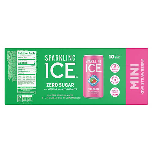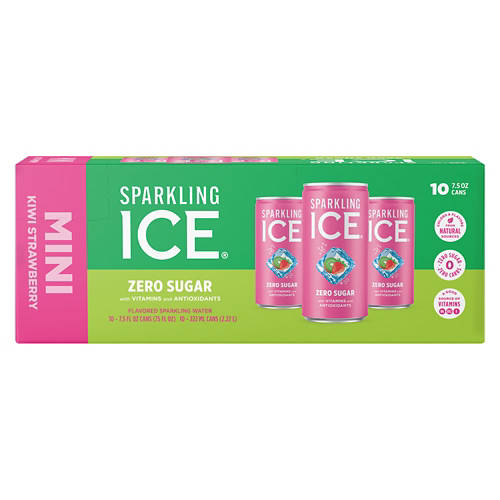 Sparkling Ice Zero Sugar Kiwi Strawberry Mini Sparkling Water is a refreshing choice with zero sugar and packed with vitamins and antioxidants. Enjoy the delightful kiwi strawberry flavor in these mini cans for a quick pick-me-up at home, work or on-the-go. With only five calories per can, it's a guilt-free way to stay hydrated and invigorated. Add Sparkling Ice Zero Sugar Kiwi Strawberry Mini Sparkling Water to your daily routine for a burst of fruity refreshment.