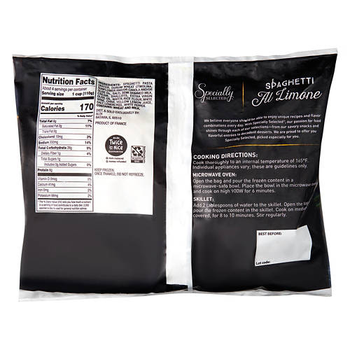 Specially Selected Al Limone Spaghetti is a delightful blend of spaghetti in a creamy lemon juice and chive sauce. Ready in minutes, this dish is perfect for a quick lunch or an elegant dinner. Pair it with a side of garlic bread or a fresh salad for a complete meal. Keep this 16 oz pack in your freezer for an easy and delicious option anytime.