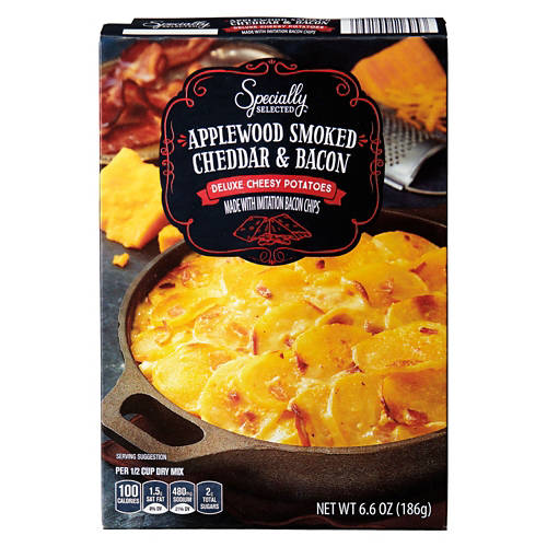 Specially Selected Applewood Smoked Cheddar & Bacon Deluxe Cheesy Potatoes bring a rich, smoky flavor to your meals. These deluxe cheesy potatoes are perfect for a hearty side dish or a comforting main course. Enjoy the robust taste of Specially Selected Applewood Smoked Cheddar & Bacon Deluxe Cheesy Potatoes for a satisfying and flavorful dining experience.