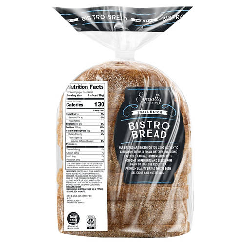 Specially Selected Bistro Original Bread is crafted with just two main ingredients: flour and water. This small batch bread contains no artificial flavors, preservatives or colors. Enjoy it toasted with your favorite spread or use it to create a delicious sandwich. Its simplicity and quality make it a versatile addition to any meal.