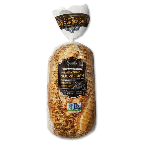 This Specially Selected Everything Sourdough Loaf is loaded with toasted sesame seeds, poppy seeds, onion and garlic for a flavorful experience. No artificial flavors, preservatives or colors. Enjoy it toasted with butter for breakfast, stacked with your favorite deli meats for lunch or as a side with your dinner soup. This non-GMO verified bread is a tasty and wholesome option for any meal.