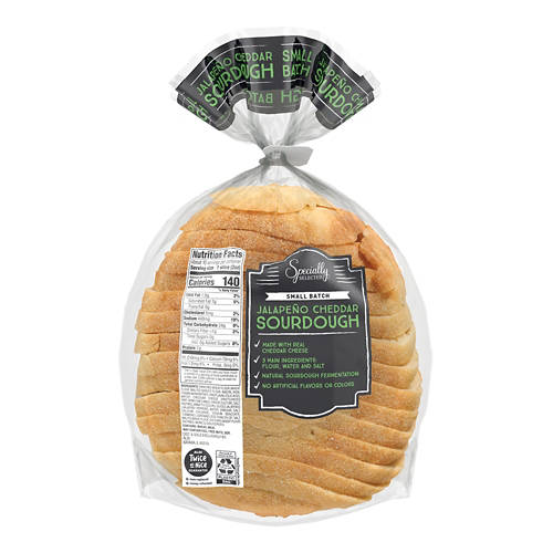 This Specially Selected Jalapeno Cheddar Sourdough is perfect for a spicy twist on your favorite sandwiches. This sourdough also makes a delicious base for grilled cheese or a bold accompaniment to soups and salads. With every bite, enjoy the robust flavor that only quality ingredients can provide. Add a unique twist to your meals with this flavorful sourdough.