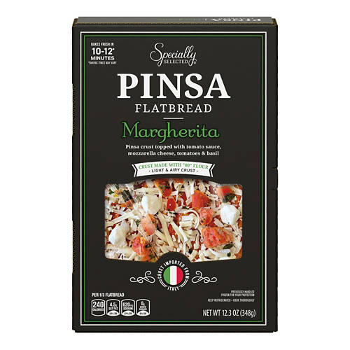 This Specially Selected Margherita Pinsa Flatbread is a must-have for your next meal. With a light and airy crust made from "00" flour, this flatbread is topped with tomato sauce, mozzarella cheese, tomatoes and basil. Ready in just 10-12 minutes, it makes a delicious and quick dinner option. Indulge in the authentic flavors imported from Italy and enjoy a restaurant-quality experience at home.