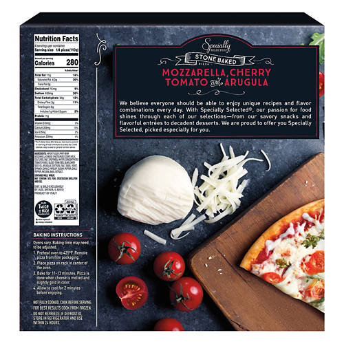 Indulge in the flavors of Italy with this stone-baked Mozzarella, Cherry Tomato and Arugula Pizza. Topped with creamy mozzarella, juicy cherry tomatoes and fresh arugula, it’s a delightful meal option. Perfect for a quick dinner or a casual get-together, this pizza is sure to impress. Simply bake and enjoy a taste of authentic Italian cuisine in the comfort of your home. Make dinnertime special with Specially Selected Mozzarella, Cherry Tomato and Arugula Pizza.