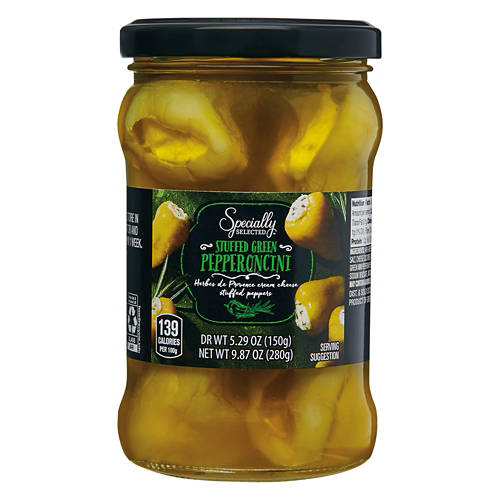 Specially Selected Mini Pepperoncini Stuffed with Herb Cream Cheese are a flavorful addition to your meals. The Herb de Provence cream cheese pairs beautifully with the tangy pepperoncini, creating a delightful bite. Add them to a charcuterie board, toss into salads or enjoy them straight from the jar for a burst of flavor. Elevate your culinary experience with these delectable stuffed pepperoncini.