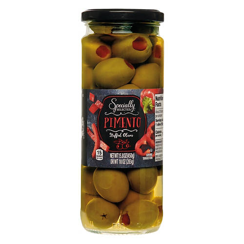 Instantly elevate your snack break with these Specially Selected Pimento Stuffed Greek Queen Olives! Each fresh Queen olive is stuffed with flavorful pimento cheese for the perfect blend of spicy and savory in every bite. Enjoy yours on their own or in a loaded charcuterie board to stay satisfied all afternoon.