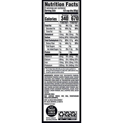 Specially Selected Pumpkin Sage Goat Cheese Risotto offers a unique blend of tender Arborio rice with goat cheese, pumpkin puree and sage. This naturally flavored risotto is perfect for a quick yet gourmet meal. Simply cook and serve as a main dish or a sophisticated side. It’s a flavorful option for a cozy dinner or a special occasion. Indulge in the rich taste of Specially Selected Pumpkin Sage Goat Cheese Risotto.