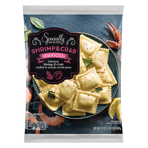 Enjoying elevated meals at home is easy with this Specially Selected Shrimp & Crab Ravioli! Each tender ravioli pocket is stuffed with a fresh shrimp and crab mix for a burst of flavor in every bite. Pair yours with a creamy lemon sauce or melted garlic butter for a delicious dinner in minutes.