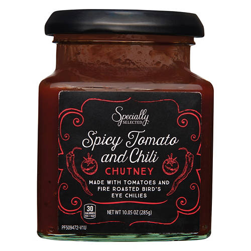 Specially Selected Spicy Tomato and Chili Chutney brings a bold kick to your dishes with a blend of tomatoes and fire-roasted bird's eye chilies. Add it to your sandwiches for an extra punch or use it as a marinade to spice up your grilling. With only 30 calories per tablespoon, it's a flavorful addition to your meals. Give your recipes a unique twist with this delicious chutney.