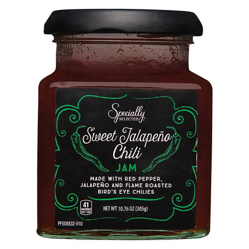 Specially Selected Sweet Jalapeno Chili Jam is made with red pepper, jalapeno and flame roasted bird's eye chilies. This jam is a delightful blend of sweet and spicy, perfect for spreading on toast, pairing with cheese or adding a kick to your favorite recipes. Delicious and versatile, this jam will quickly become a staple in your kitchen.