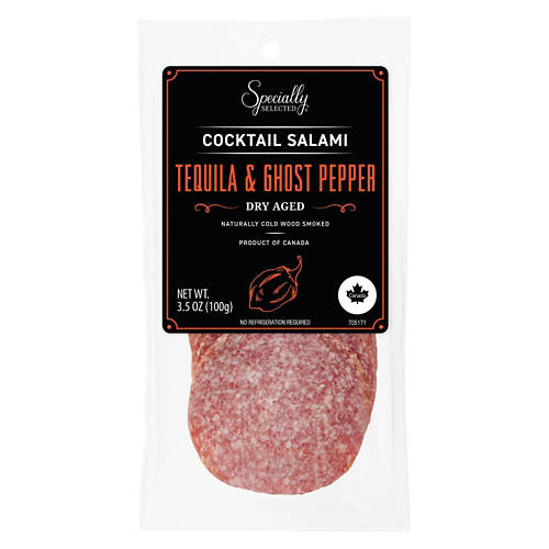 Specially Selected Tequila & Ghost Pepper Cocktail Salami is dry aged and naturally cold wood smoked for an exceptional flavor. Spice up your charcuterie board with this bold salami that pairs well with cheeses and crackers. Add it to your favorite pasta dishes or enjoy it on its own for a fiery kick. Enjoy the unique flavor of this delicious salami.